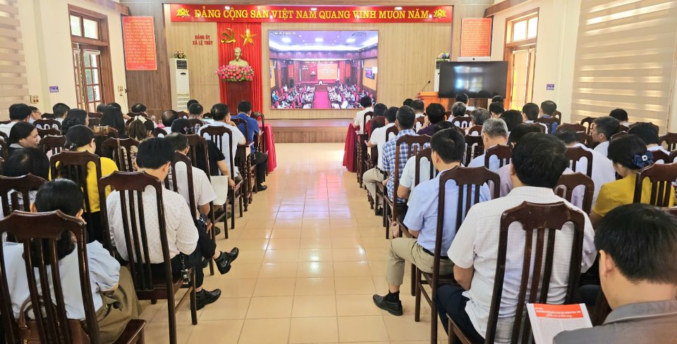 Ngày 07/10/2025, Đảng ủy xã Lệ Thủy tổ chức kết nối hội nghị trực tuyến do Tỉnh ủy tổ chức về thông báo nhanh kết quả Đại hội đại biểu Đảng bộ tỉnh Quảng Trị lần thứ I, nhiệm kỳ 2025- 2030. Đồng chí Trương An Ninh, Ủy viên Ban Thường vụ Tỉnh ủy, Trưởng Ban Tuyên giáo và Dân vận Tỉnh ủy chủ trì hội nghị. Tham dự tại điểm cầu Đảng ủy xã Lệ Thủy có các đồng chí: Phan Thanh Cường- TUV, Bí thư Đảng ủy, Chủ tịch HĐND xã.